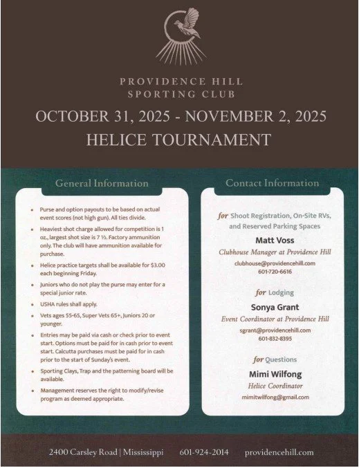 Back to All Events Providence Hill Farm Friday, October 31, 2025 6:00 PM Sunday, November 2, 2025 7:00 PM Providence Hill Farm 2400 Carsley Road Jackson, MS, 39209 United States (map) Google Calendar ICS View fullsize View fullsize